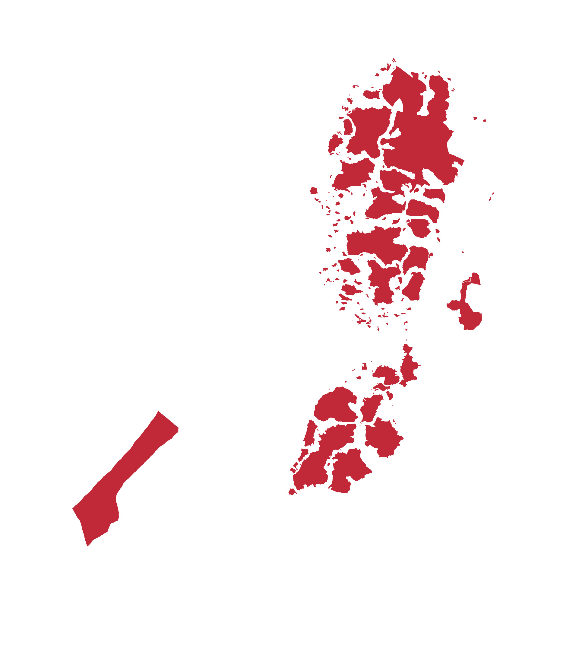 Die Scherben basieren auf einer Karte der palästinensisch kontrollierten Gebiete von Wikipedia.